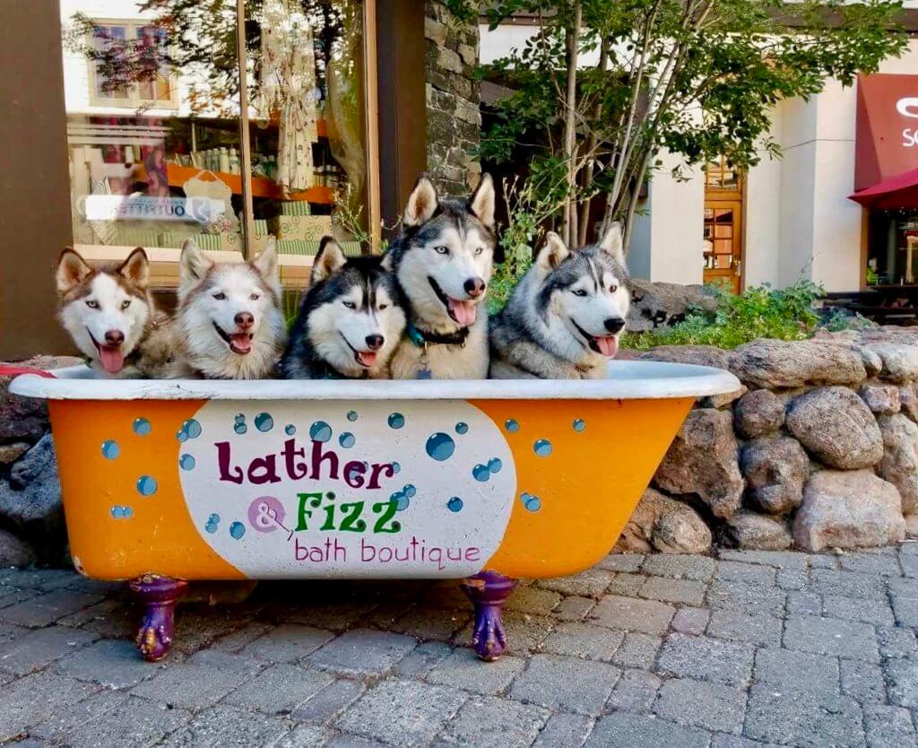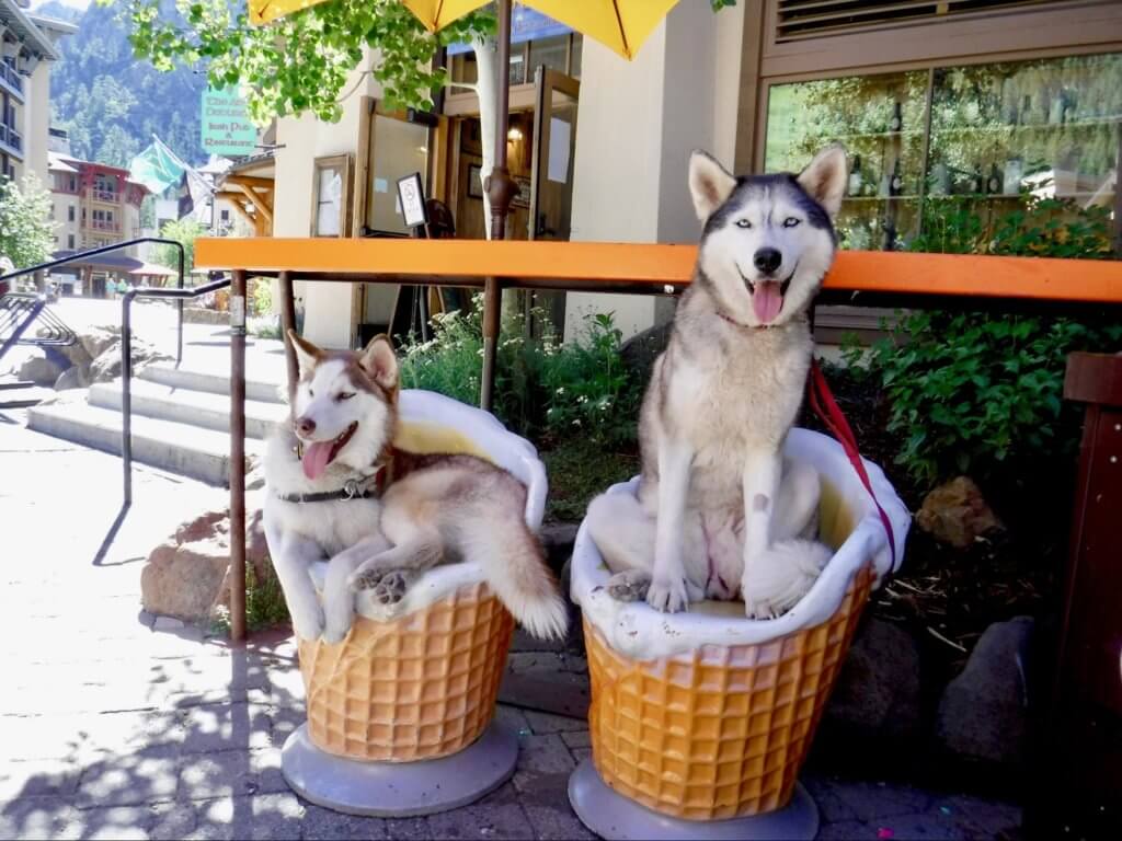 We wanted to walk around the alpine village since it was such a beautiful day with no crowds. There are so many great picture taking spots. The giant chair, the ice cream cone seats and tables at Euro Sweets, the cute orange bathtub at Lather and Fizz and so many other little spots around the village. If you run out of treats or need any dog supplies don’t worry, there is a boutique pet store that sells high-quality pet products.