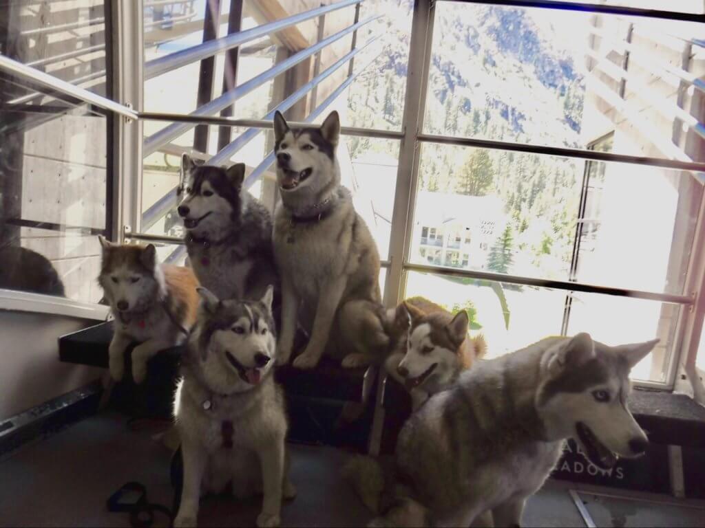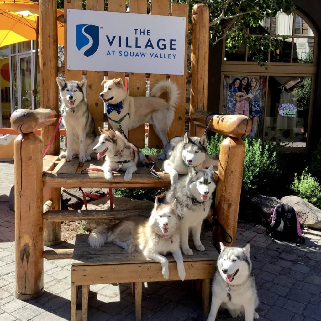 We met up with the rest of the group and found that they have been wonderful mascots for squaw valley! Maya, Titan, Kalihi, Nikki, and Kogan were greeting visitors and getting lots of attention. On our way down, I thought it would be fun to take pictures of the dogs in the tram after all the passengers had left. The tram operator was so nice, I asked if he’d mind pausing the tram so we can take pictures of the dogs, he gladly agreed and even helped us! I wished we would’ve done it at the top to capture the alpine meadows in the background, so be sure to take pictures on top when you go!