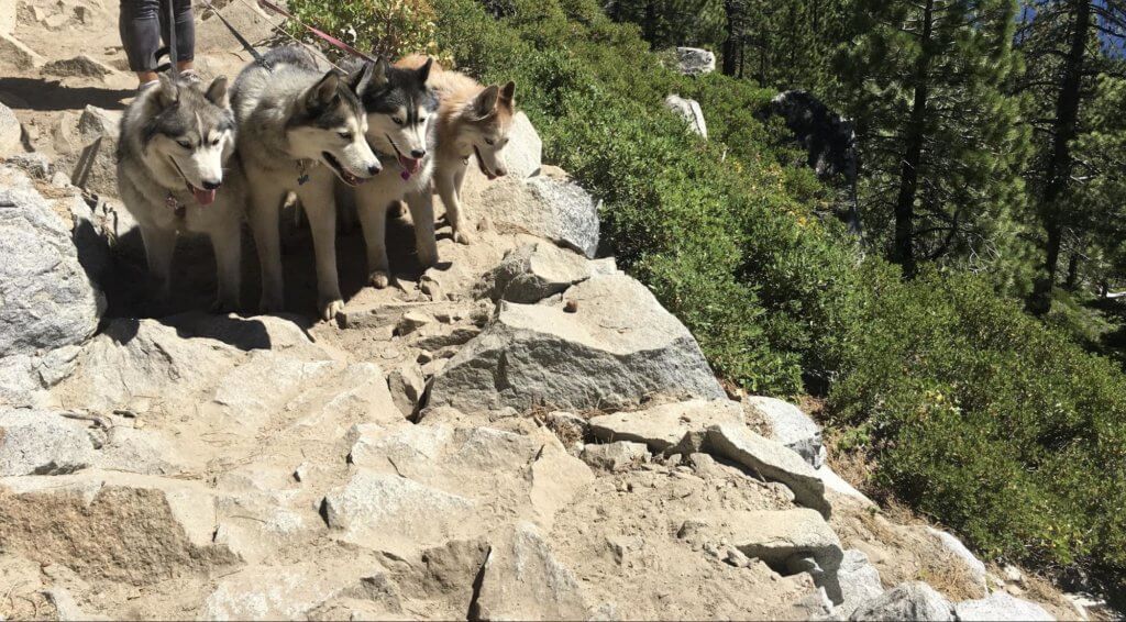South Lake Tahoe is beautiful year round. It is one of those magical places that draws you back time after time. The main attraction is the Lake for its water clarity, due in part to the “Keep Tahoe Blue” program. The lake absorbs red light thus creating its famous vibrant blue color. I thought it would be fun to visit Tahoe with friends during early summer before the summer crowds and before the weather gets too hot for our huskies. I hope this article will help you plan your next adventures with your friends.